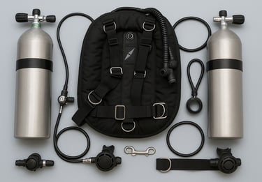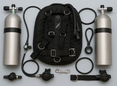Recreational diving uses a simple single-tank backmount setup -lightweight and easy to manage.