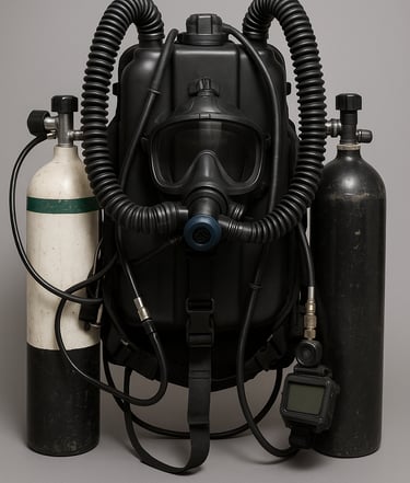 Rebreather diving uses a closed-circuit system that recycles each breath instead of releasing bubbles into the water.